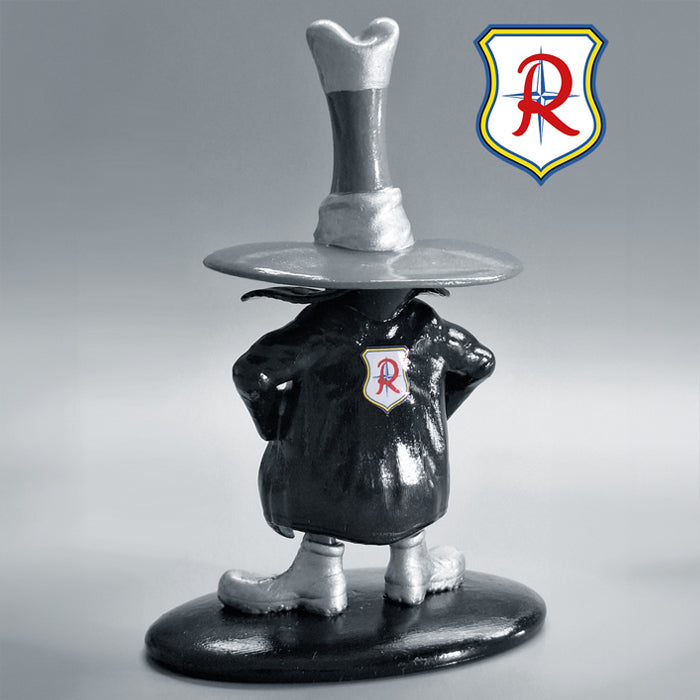 This high-quality 3D resin print is splitted in three different parts (hat/body/stand). All parts are held together with little magnets.
