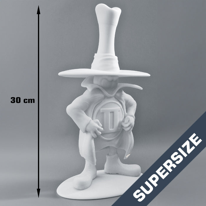 With an overall height of 30 cm in white resin it is perfect for sanding, painting, drilling etc. - what ever you want to do with him. The body is hollowed for weight reduction.