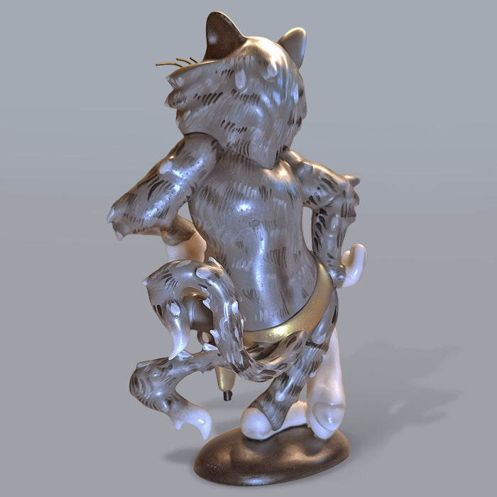 The TOMCAT is delivered fully assembled. The whiskers are made of metal and permanently mounted, as are the two resin-printed tails. Bigger parts are hollowed for weight reduction. Every figure is one of a kind, with a custom paint scheme available upon request.